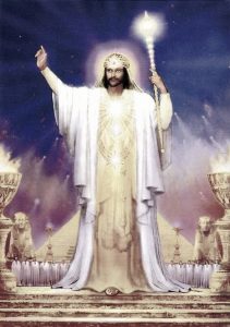 I’m seeing an image of him looking like Merlin from the movie Excalibur, holding the staff with the crystal on the top of it, shining a light right at me.